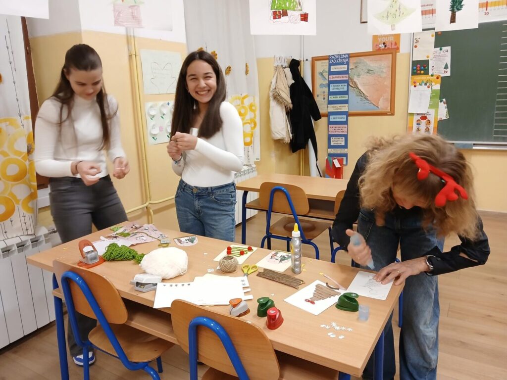 U prizemlju su još Nataša Mesaroš Grgurić i Nataša Jelčić Kovačević uz pomoć učiteljice Veronike Došlić za cjelokupnu božićnu čaroliju pripremile božićne čestitke i lanac dobrih želja, dok su na katu te čarobne želje bile pretvorene u kreativne priče na radionici koju su osmislile i vodile stručne suradnice, Snježana Carević Tomac i Tea Juretić.