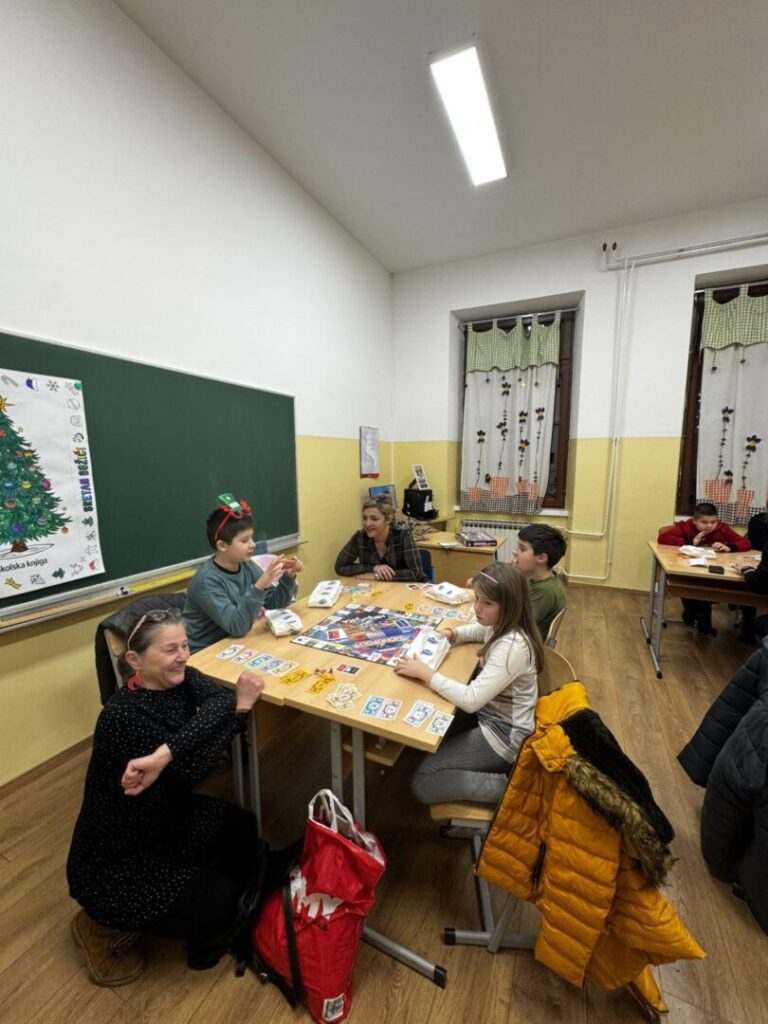 Oko učiteljice Tanje Matijević okupile su se naše male glazbene zvijezde koje su svojim pjesmama i vedrim glasovima unijele pravi božićni ugođaj u srca svih prisutnih. U knjižnici se igrao ZOOdijum, društvena igra koju su, posebno za ovu božićnu priliku, osmislile učiteljice i provoditeljice Zdravstvenog odgoja i obrazovanja u našoj školi, Biljana Žutelija i Dorina Badurina, a da društvenim igrama tu nije kraj pobrinula se učiteljica Hana Grubišić Krmpotić koja je učenike okupila oko Financijske pismenosti.