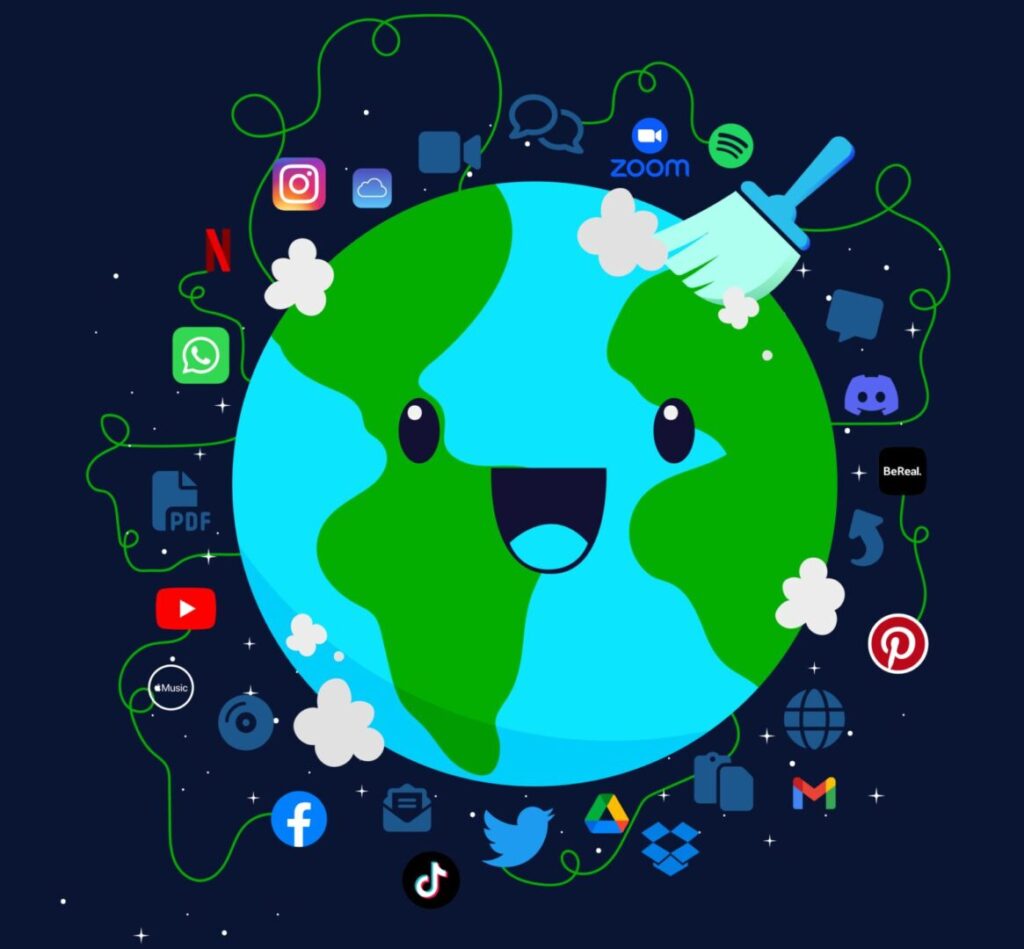 Internet i popratni sustavi godišnje proizvedu preko 900 milijuna tona CO₂. Digitalni otpad čine svi oni suvišni podaci koje svakodnevno gomilamo: duplikati fotografija, zaboravljene aplikacije, nepročitane e-mail pretplate i “tamni podaci” (engl. dark data) kao informacije koje se prikupljaju i pohranjuju, a zatim se nikada više ne koriste. Svaki taj bajt zauzima prostor na fizičkim serverima koji rade 24/7, troše ogromne količine električne energije i zahtijevaju milijarde litara vode za hlađenje.