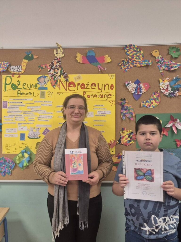 U Zbornik radova XX. Literarno-likovnog natječaja Poj riči materinske uvršten je i pohvaljen literarni rad Ča nono dela. Učenik Bruno Filipović ostvario je zapažen uspjeh na međunarodnom natječaju u organizaciji Osnovne škole Primošten. Jubilarni natječaj tradicionalno se organizira povodom obilježavanje Međunarodnog dana materinskog jezika. Potaknimo učenike na promišljanje, čuvanje i njegovanje bogatstva hrvatskoga jezika i zavičajnih govora kroz literarno i likovno stvaralaštvo.