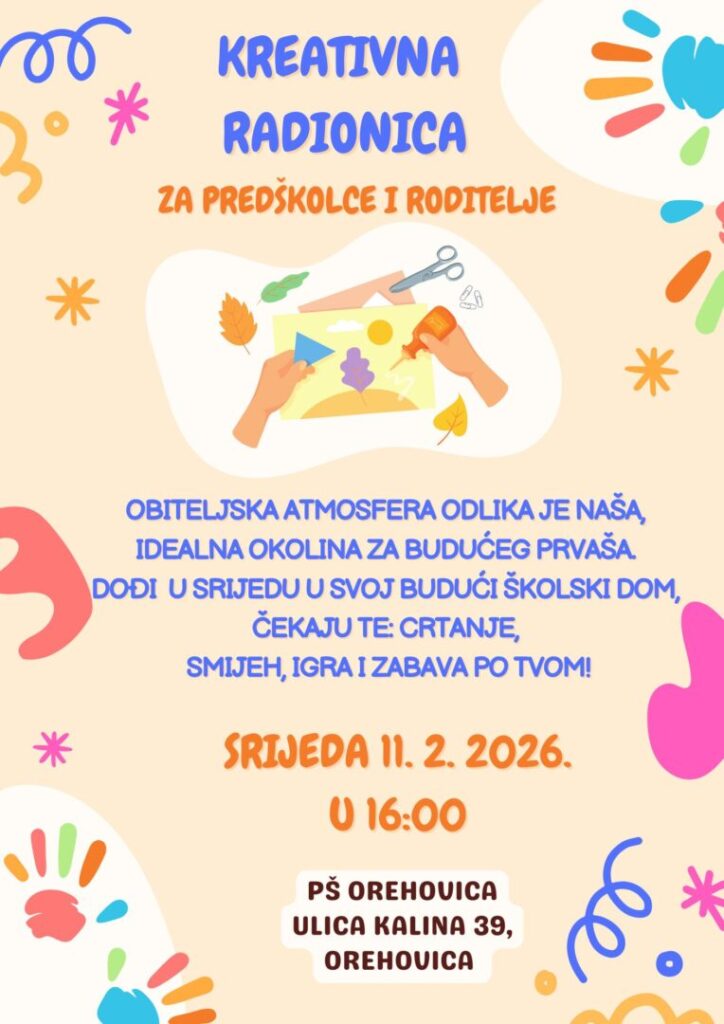 Pozivamo vas da nam se pridružite na kreativnoj radionici koja će se održati u našoj područnoj školi na Orehovici.