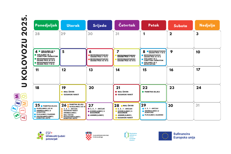 Kroz projekt STEM(AJMO!) donosimo priliku za istraživanje, eksperimentiranje i stvaranje kroz niz interaktivnih radionica i događanja za djecu i mlade. Projekt je sufinanciran iz Europskog socijalnog fonda plus i Državnog proračuna Republike Hrvatske, a cilj mu je približiti STEM djeci i mladima na zanimljiv, praktičan i dinamičan način.